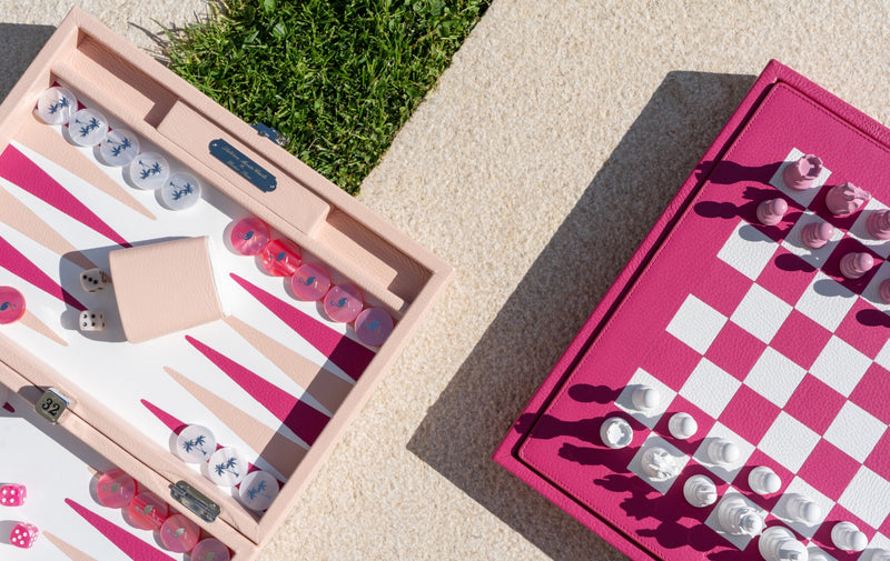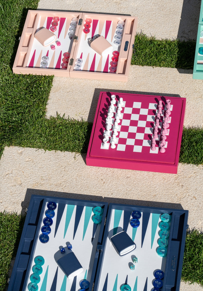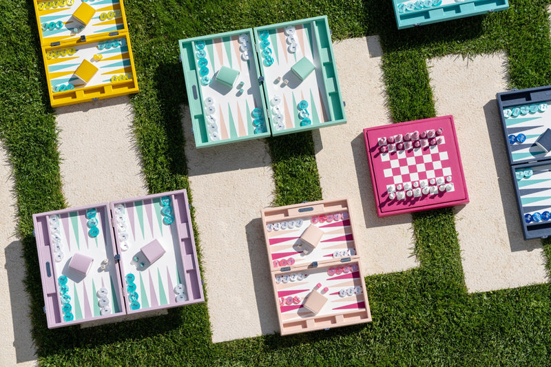 Meet your new summer companion, with Sabrina’s backgammon and chess sets in collaboration with Hector Saxe. The sets come in various sizes and are a great gift idea too!