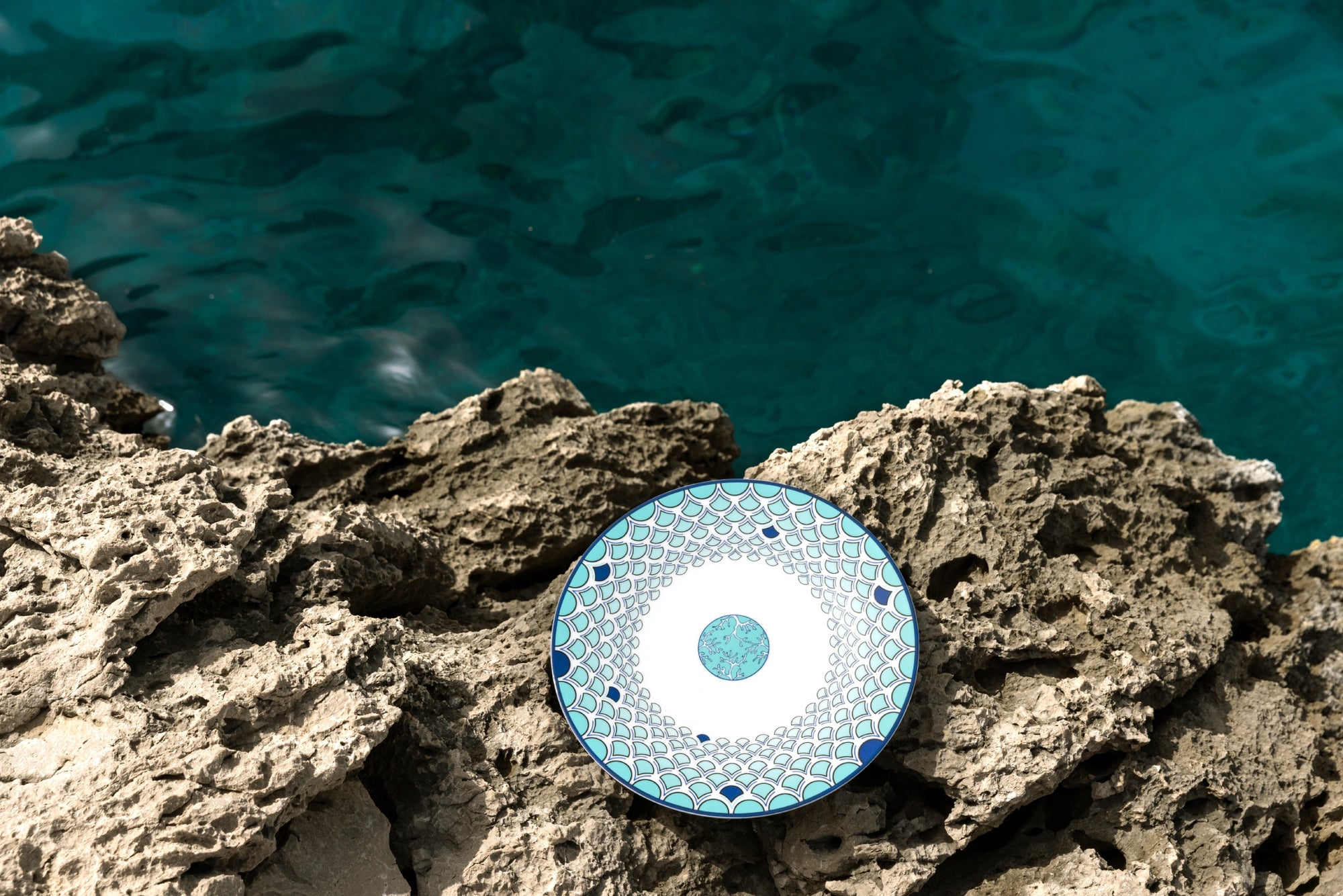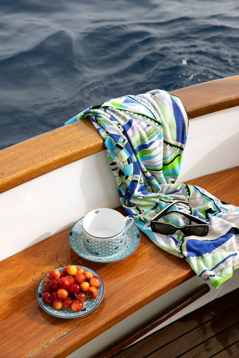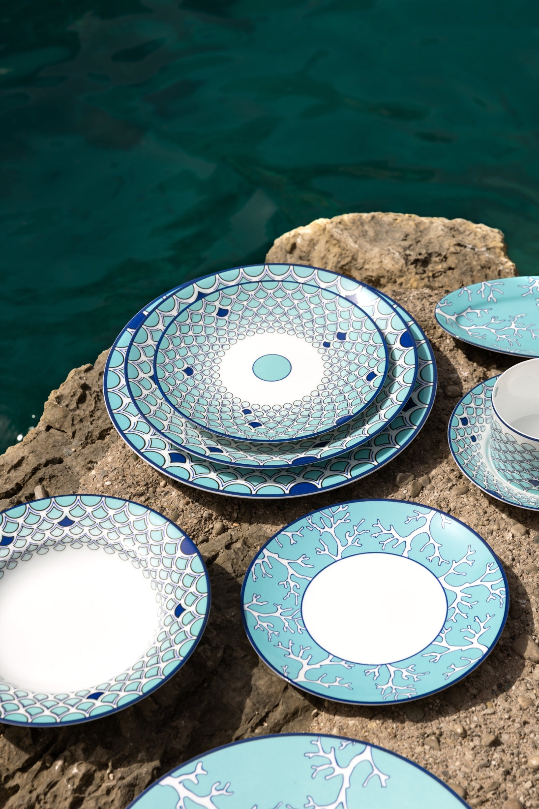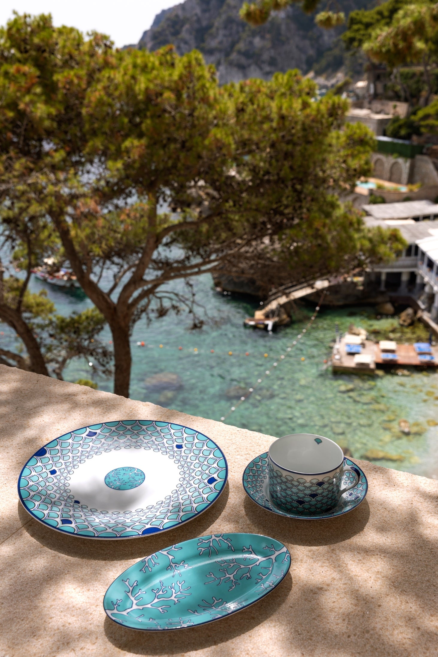 Sabrina Monte-Carlo is proud to introduce its newest collaboration with interior designer Pinto. Carla, Sabrina’s daughter, and the Parisian interiors agency put a modern spin on the existing “Lagoon” collection. This tableware was imagined and shot in Capri; an island that carries sentimental value for the entire Sabrina family. This dishwasher safe set features intricate sea-inspired elements, like corals and fish scales in different blue tones, which is an ode to the Sabrina signature color. The Capri collection is sold exclusively at Sabrina Monte-Carlo.