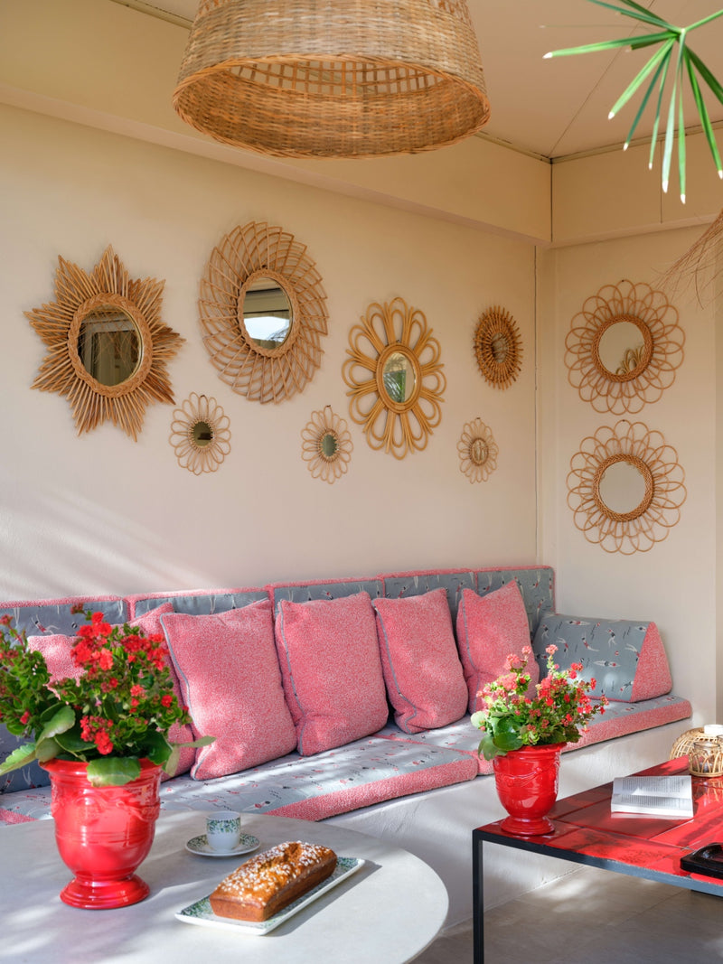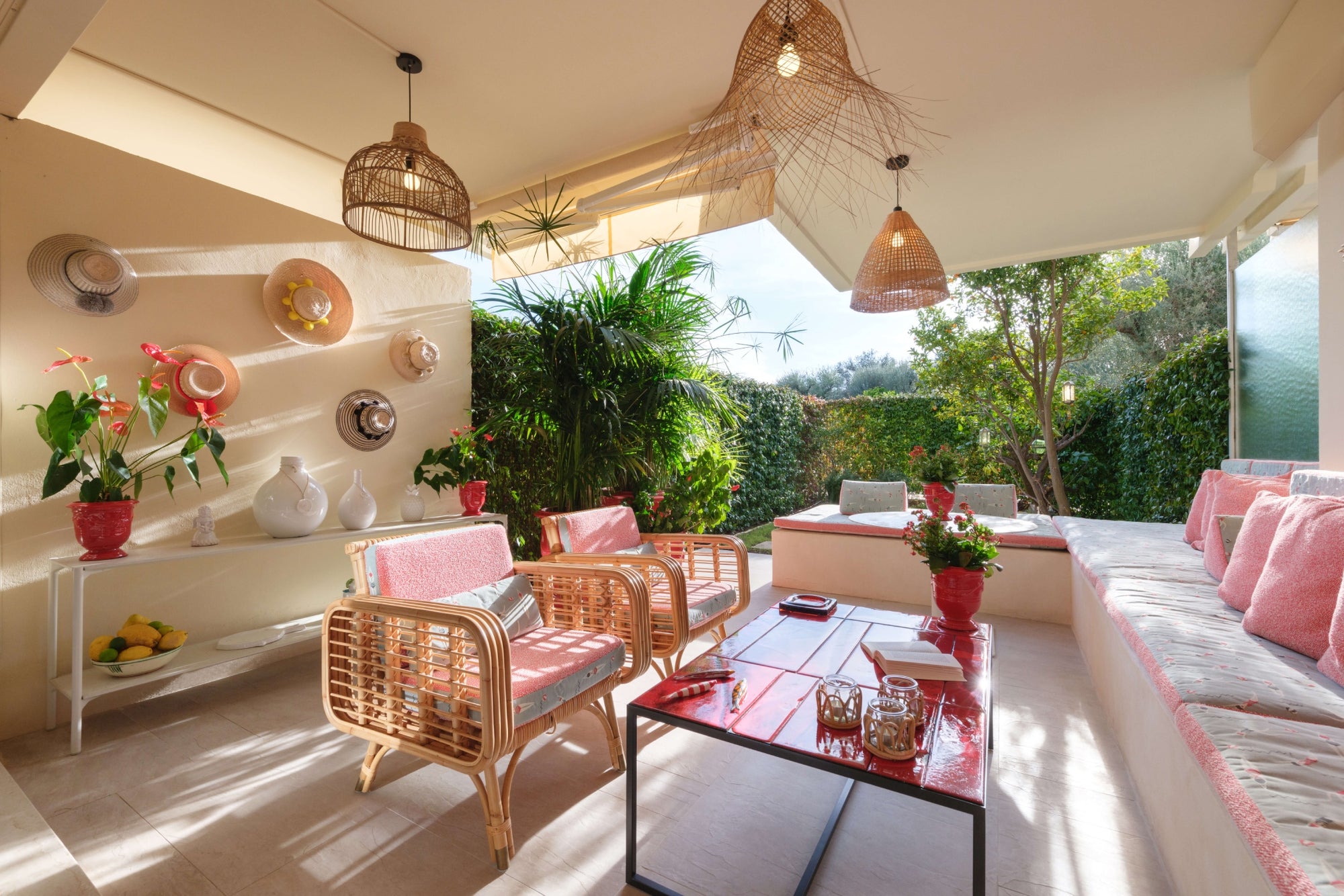 Sophie: Aperitivo! The terrace in front of my living room was designed to host: the large banquette can also be used a sunbed and the two operate coffee table allow to create a very cosy atmosphere.