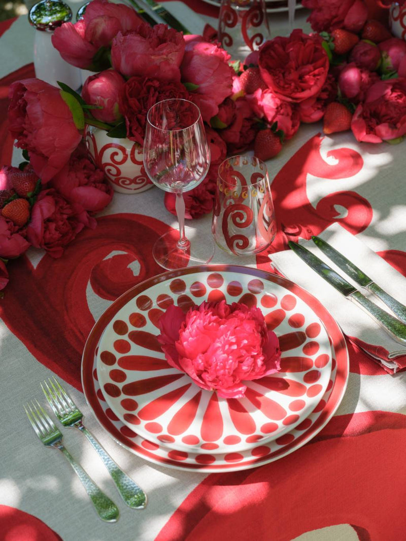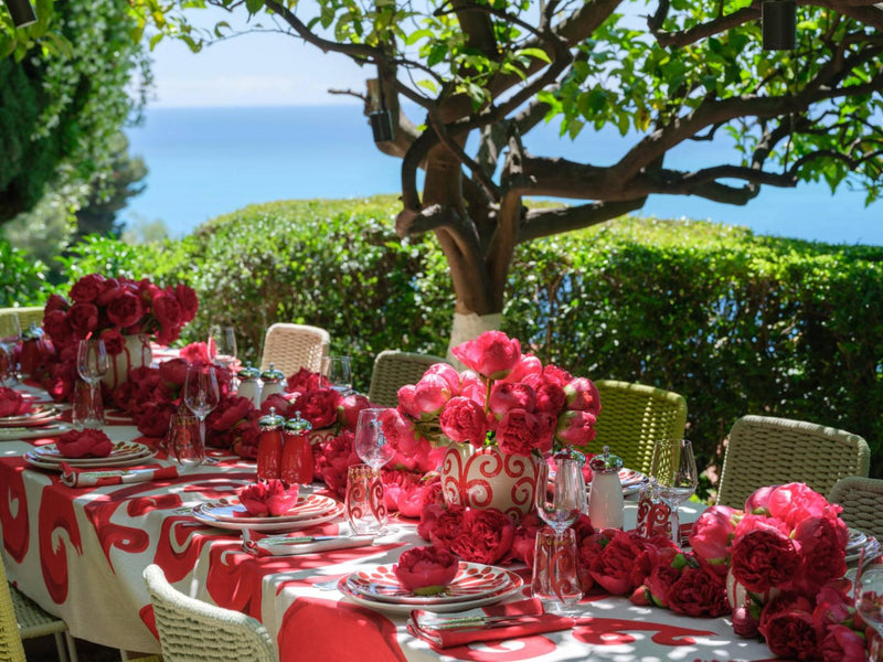 To celebrate the Formula 1 Grand Prix, we styled a garden lunch hosted by Sabrina, inspired by the thrill of the race and the elegance of spring entertaining. The table was set in bold Ferrari red—a tribute to Charles Leclerc and the Scuderia Ferrari team—creating a spirited and joyful atmosphere.