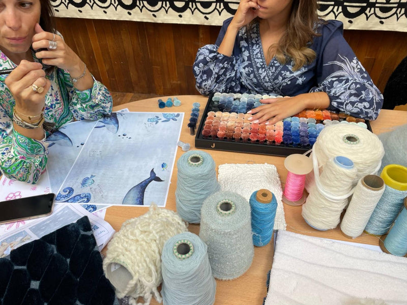 Manola & Carla were given a visit of the factory and met the team who would help us create our collection. Seeing the rugs being hand-tufted and grand tapestries being hand-woven, for clients such as Disney, Chanel or Palaces was inspiring.