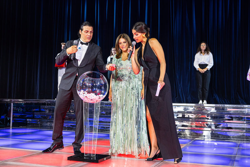 Following Jamiroquai's performance, Sabrina had the pleasure of presenting a lucky raffle participant with an angel fish sculpture by Daum, created in collaboration with the house in a limited edition of just 8 pieces.