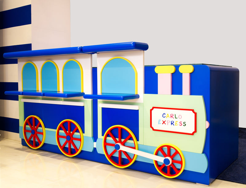 To complement the theme, we also designed and produced a custom train and cruise ship desk for your child to play and explore. Made with the highest quality wood and the most vibrant colors, these pieces of furniture are sure to provide hours of entertainment and imaginative play.