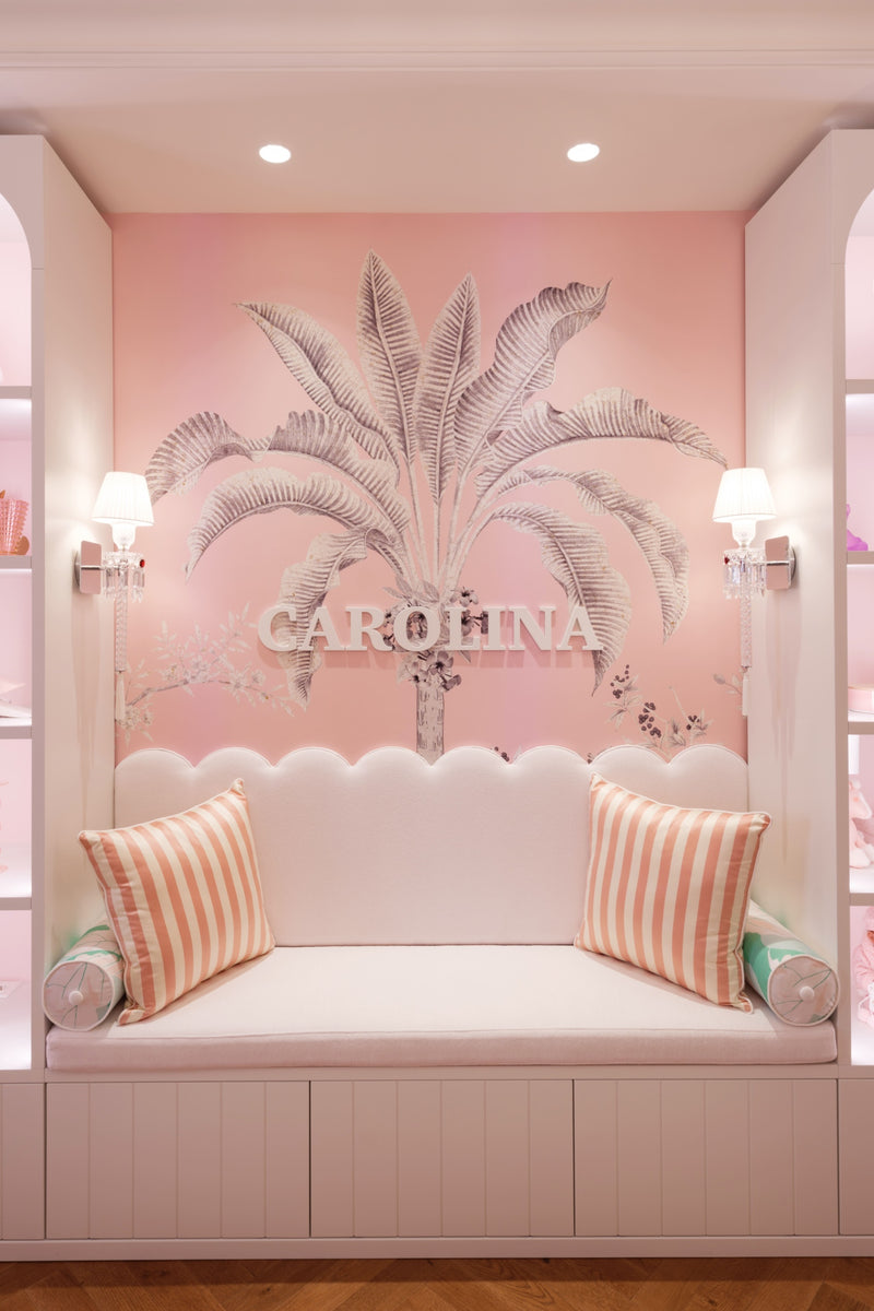 For that personal feel, wooden letters hang above a scalloped seating area, adding a unique and heartwarming element to the space.