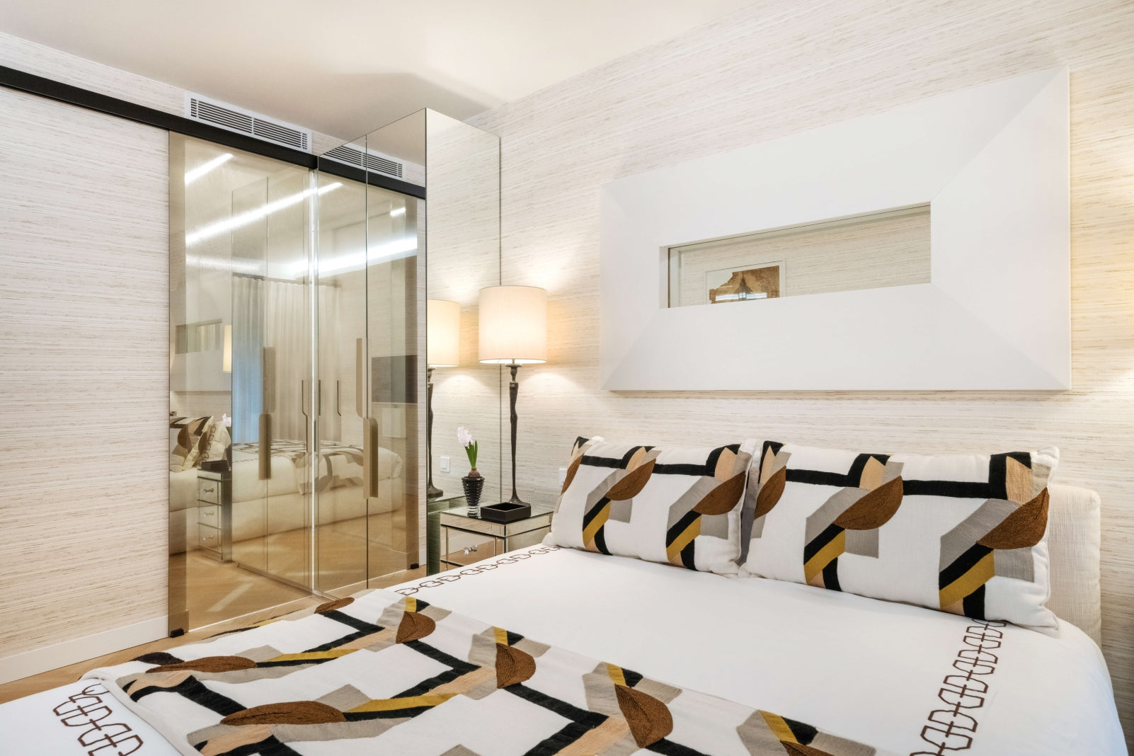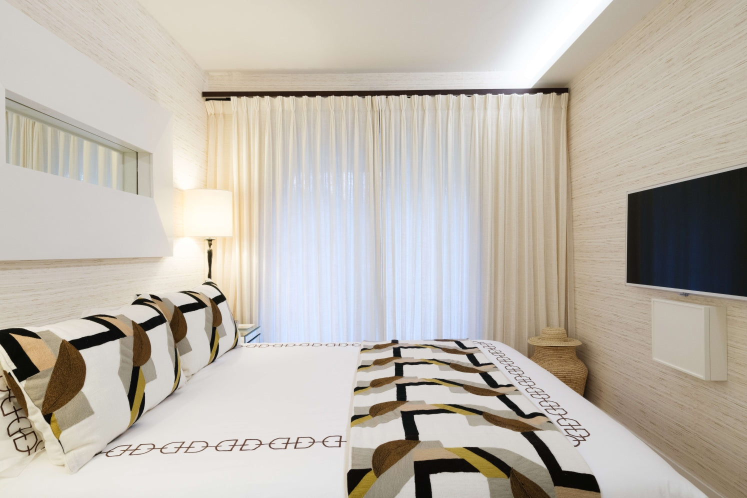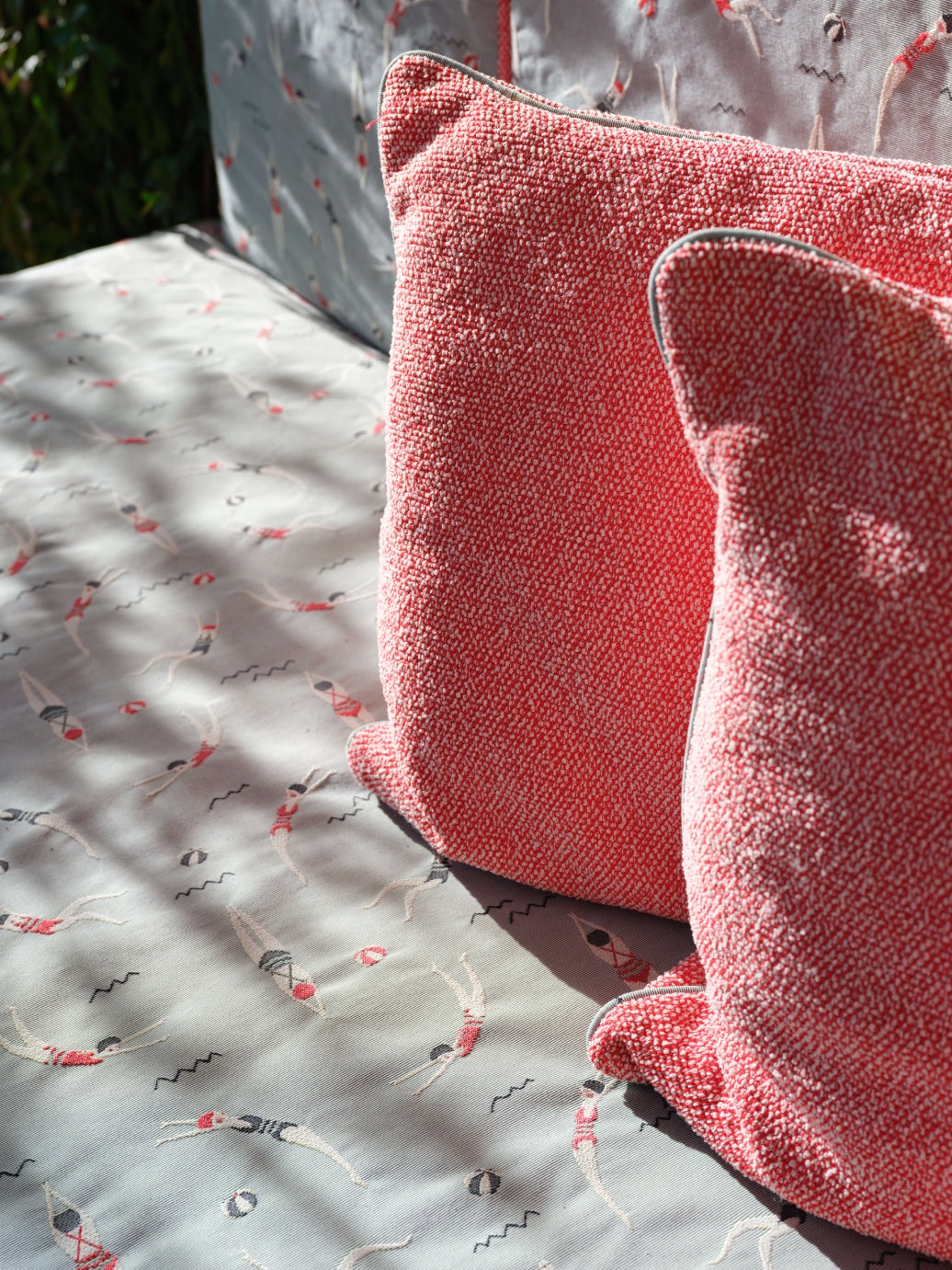 Outside, a magical garden awaits with Riviera fabric, rattan mirrors, and Paola Lenti furniture, set against the backdrop of vibrant red ceramic pots. This piece of heaven is infused with the client's personality, making it a truly unique home.