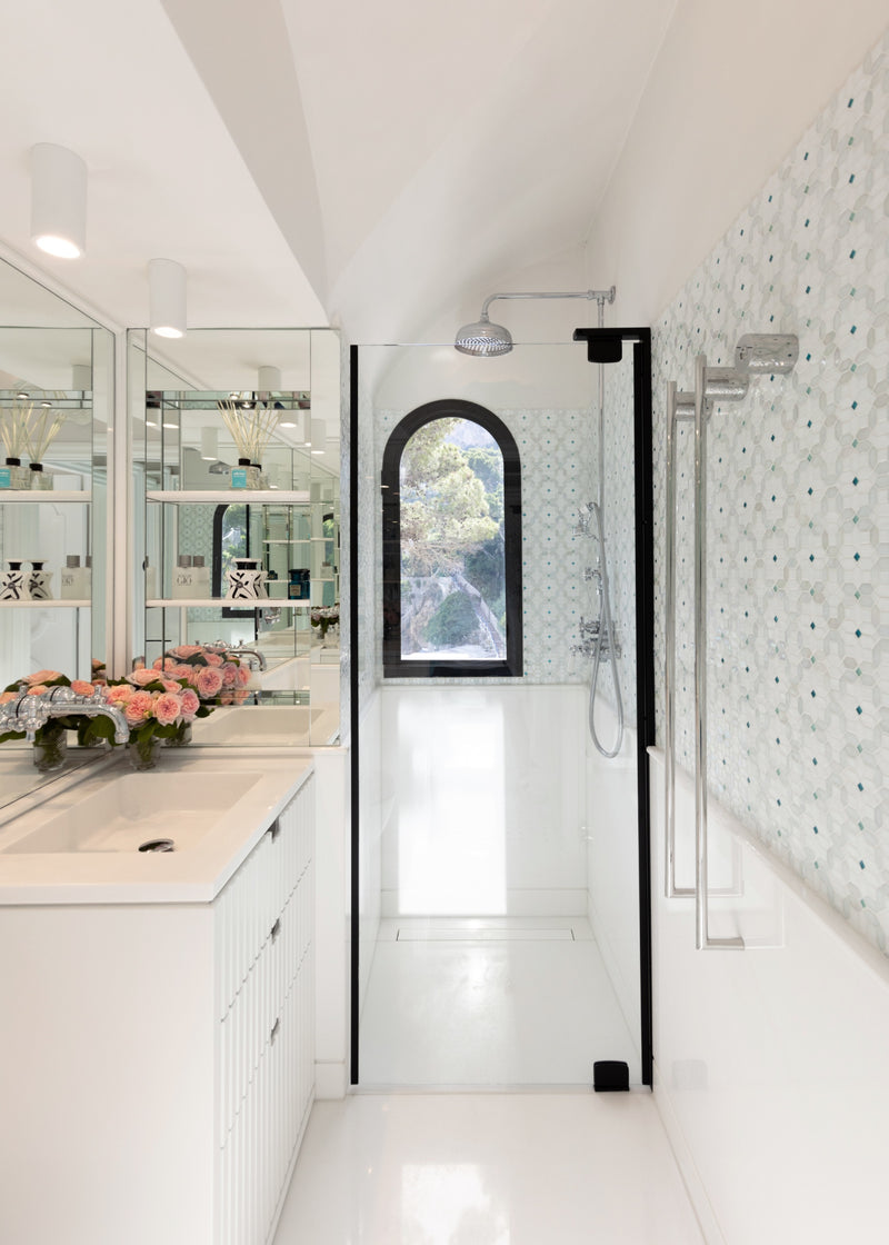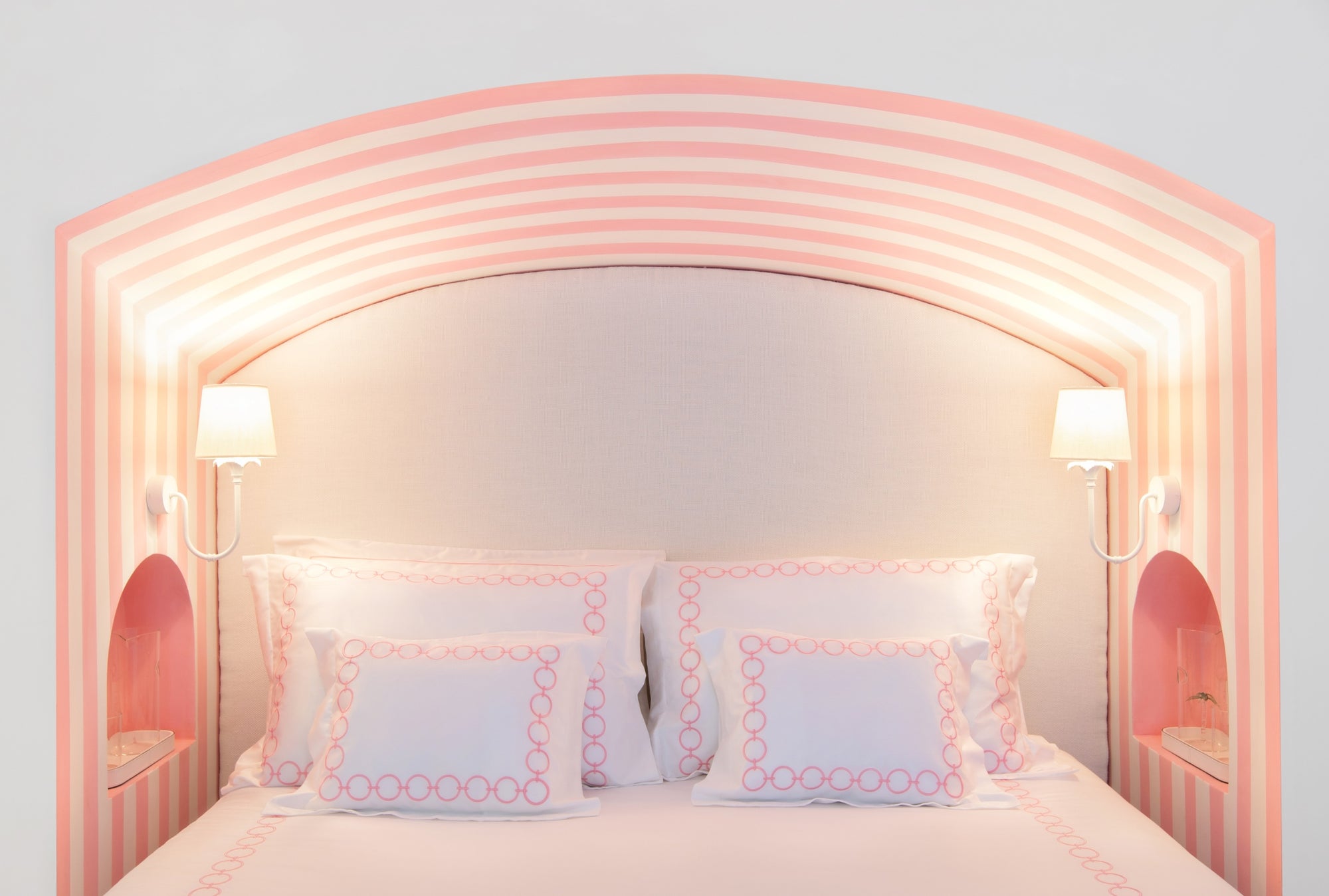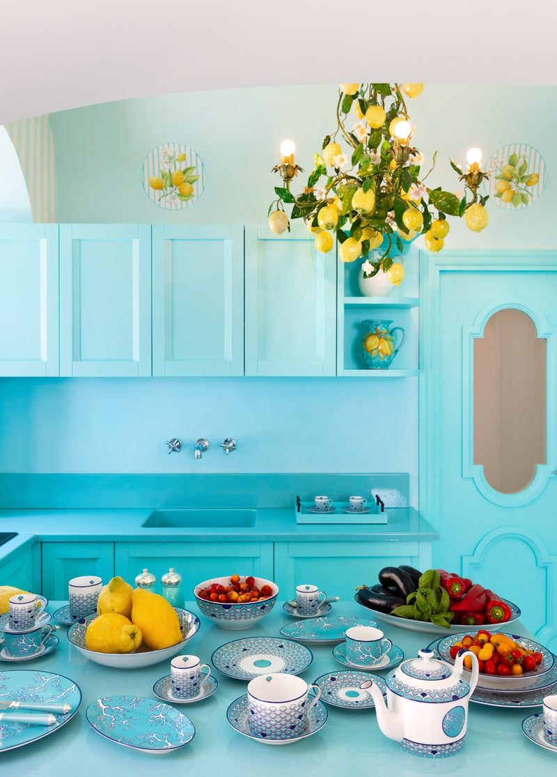 From custom Sicis white Taxos marble mosaic floors to murals painted by Francesca Marrabini, Capri Retreat has a doll-house effect by the sea.