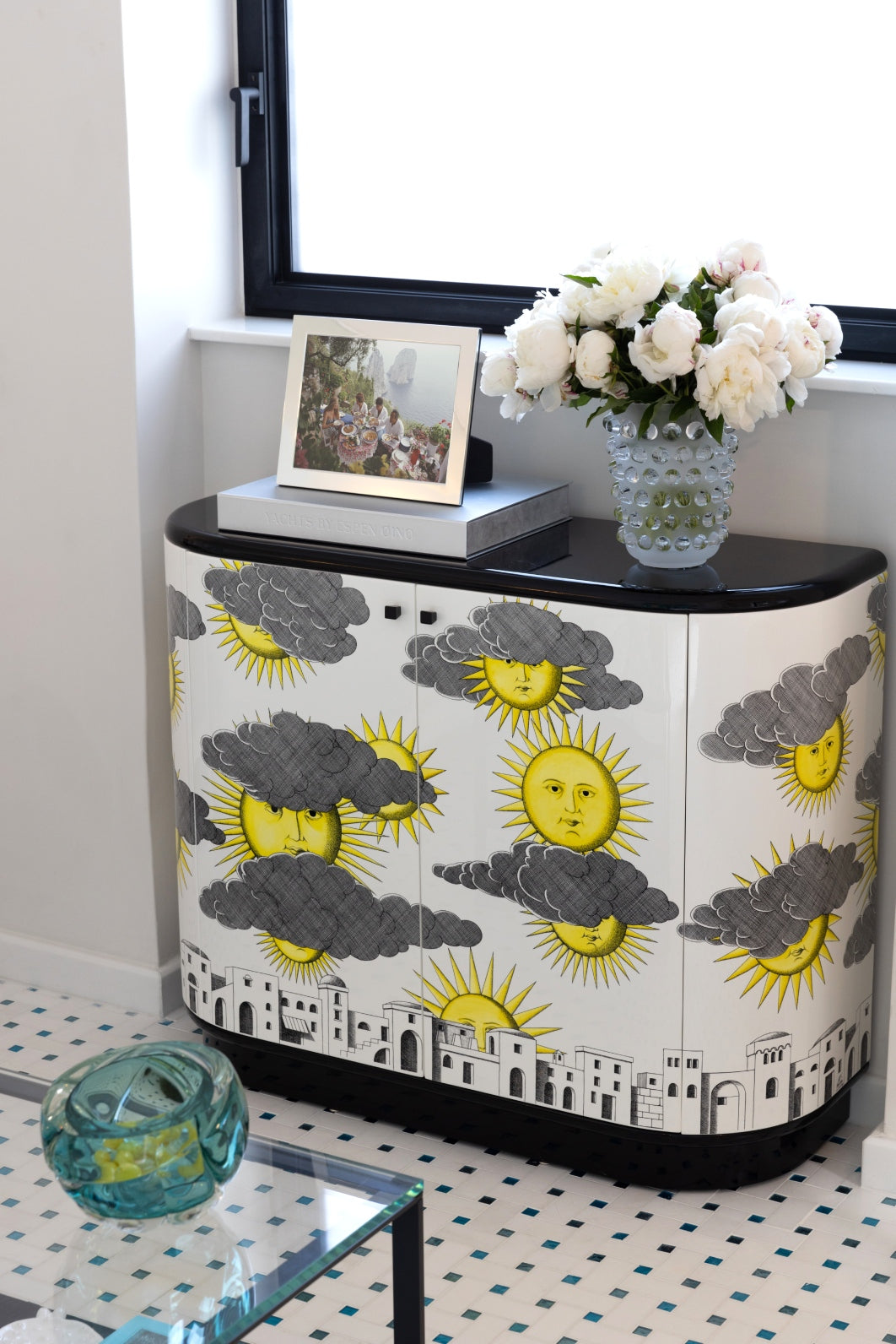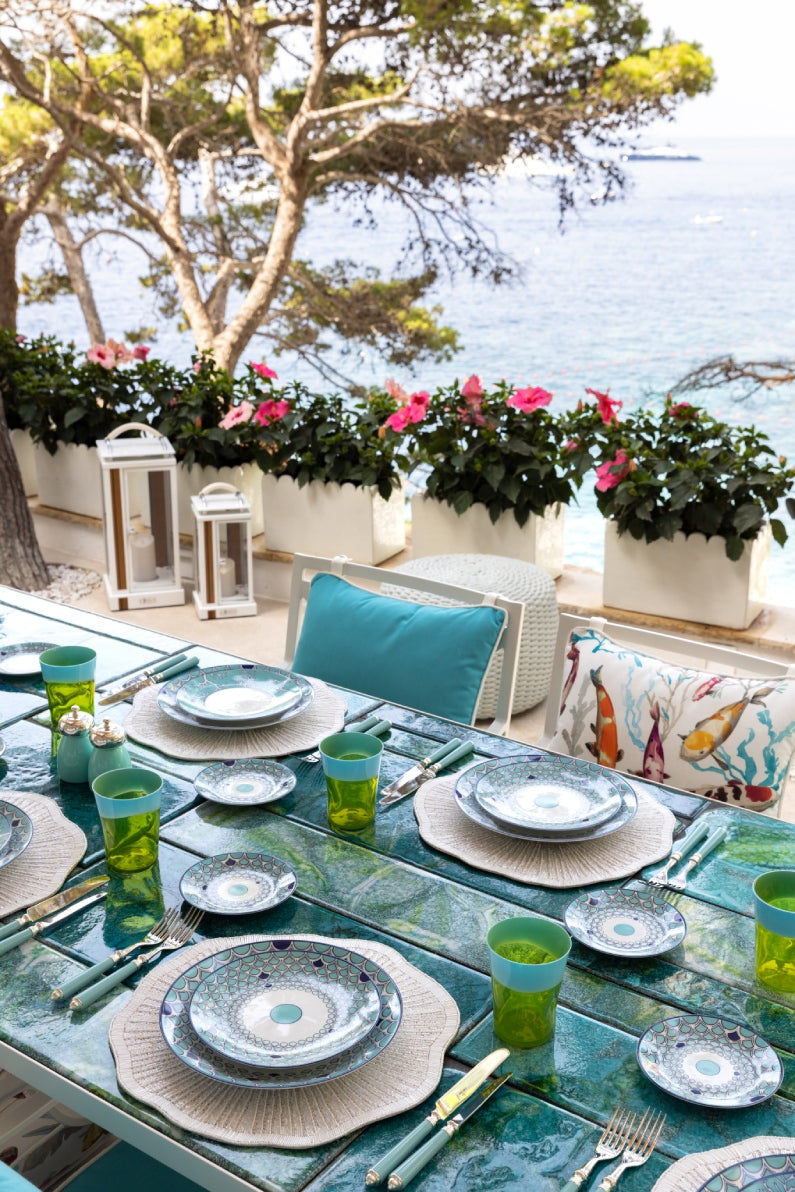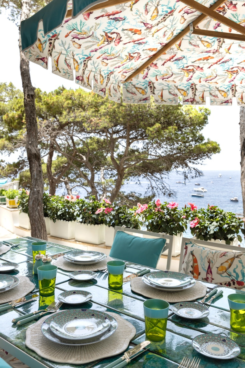 Capri Retreat is a home made for sharing pasta surrounded by mediterranean pine trees and a lagoon-like beach view with direct access to the sea. The 3-story apartment offers a view on the iconic Faraglioni and was brought to life by Sabrina, for her dream summer house. Adding a modern twist to the traditional caprese-style was a real challenge for Sabrina and her husband, who designed the colorful house using the codes of naval architecture for storage purposes.