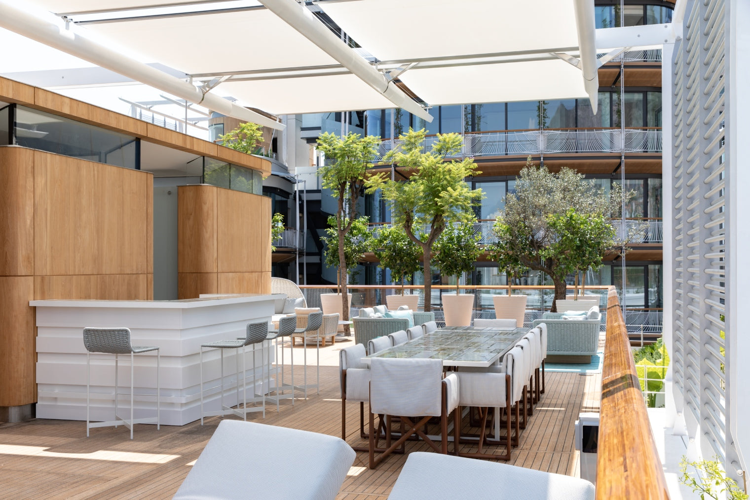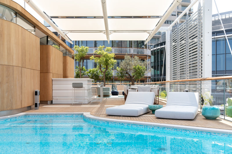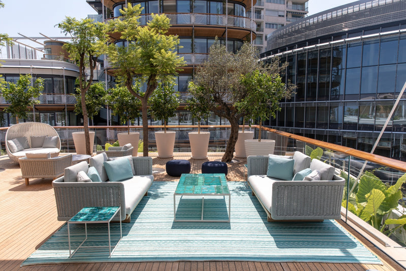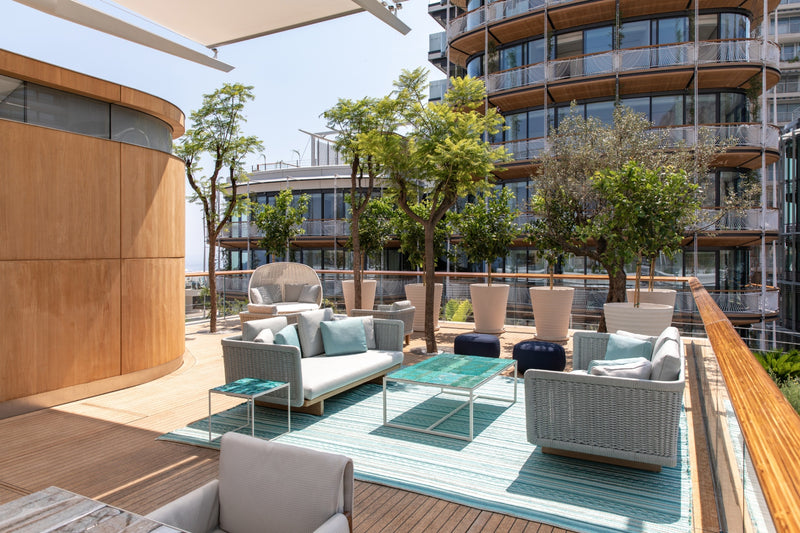 The highlight of the penthouse is the rooftop bar and dining area with ceramic tiles from Sicilian artist Marella Ferrara.