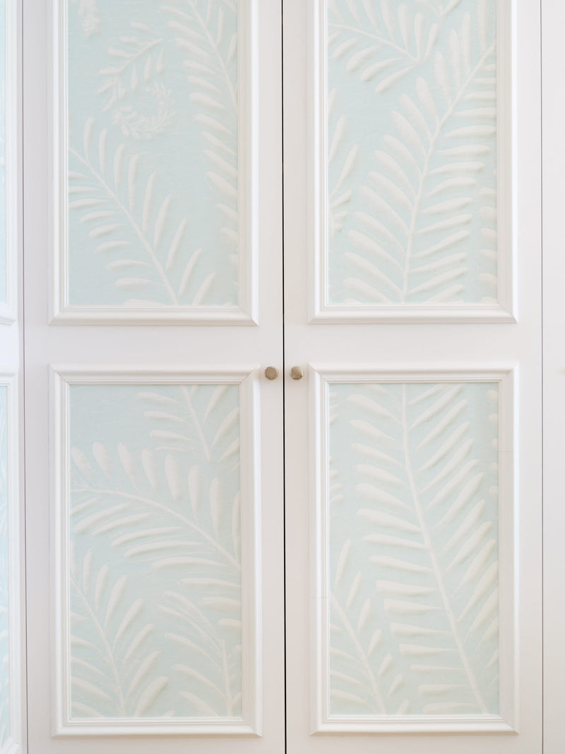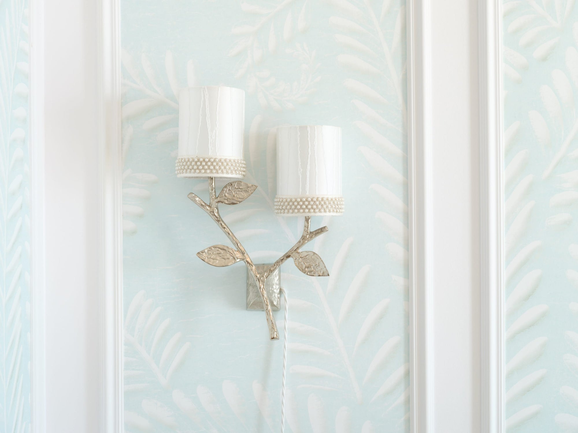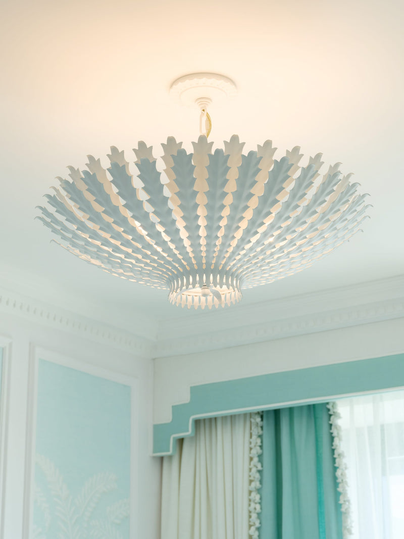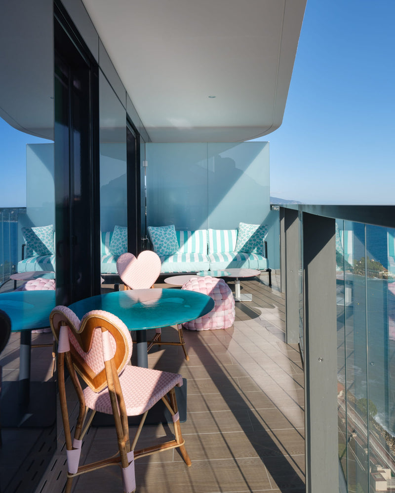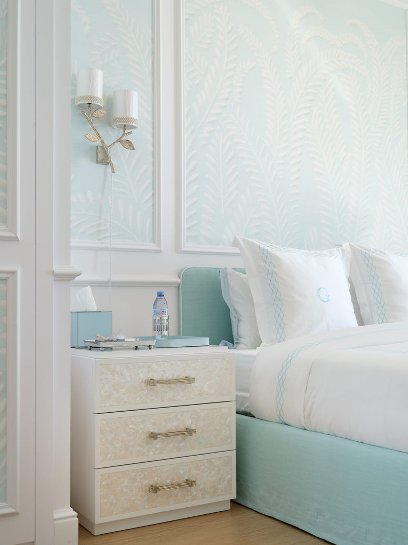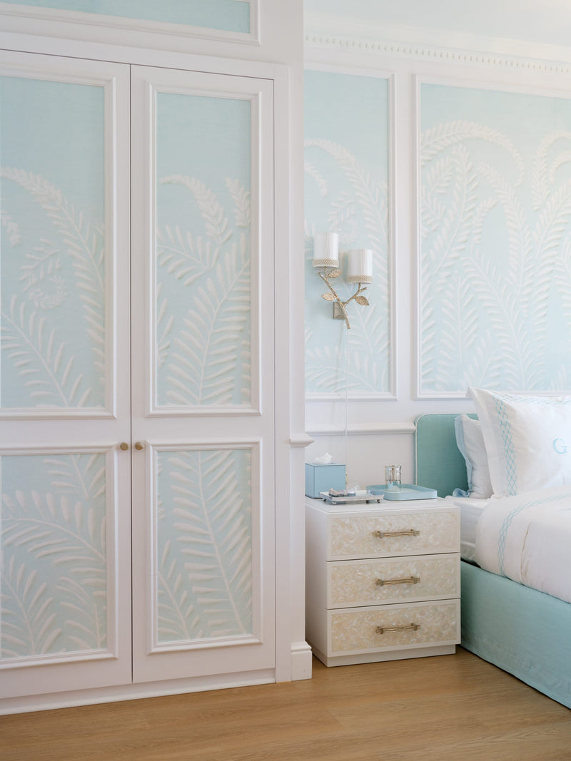 While the living room exudes energy, the bedroom offers a serene, hotel-inspired retreat. From hand-painted wallpaper and intricate boiseries to custom mother-of-pearl bedside tables, every detail exudes elegance. Luxurious touches, like whimsical pompom curtains, create a dreamy atmosphere, turning the bedroom into a haven.