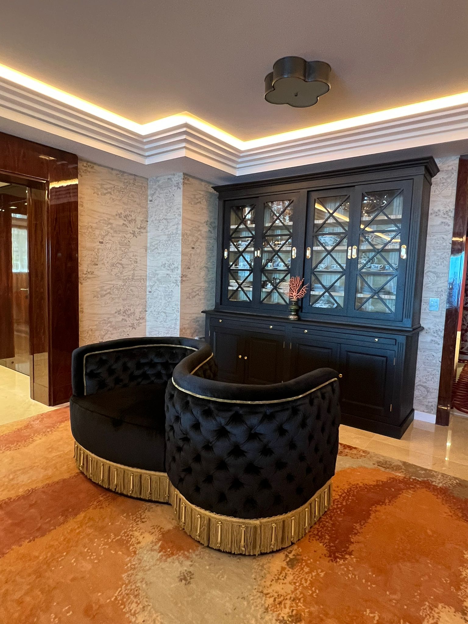 Most pieces been produced in our Ateliers of carpentry and upholstery to the client’s exact specifications.