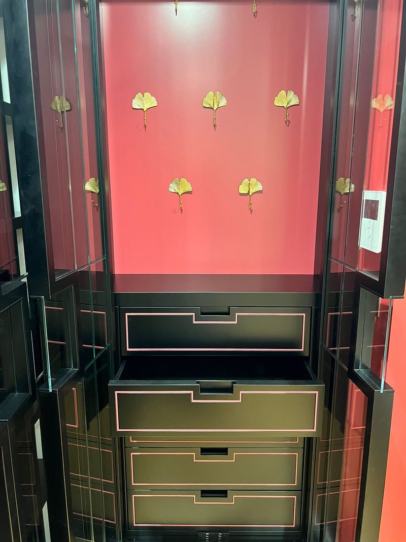 In this eclectic apartment, we mixed ethnic, japanese, morrocan and Art Deco influences to create a story in every room.