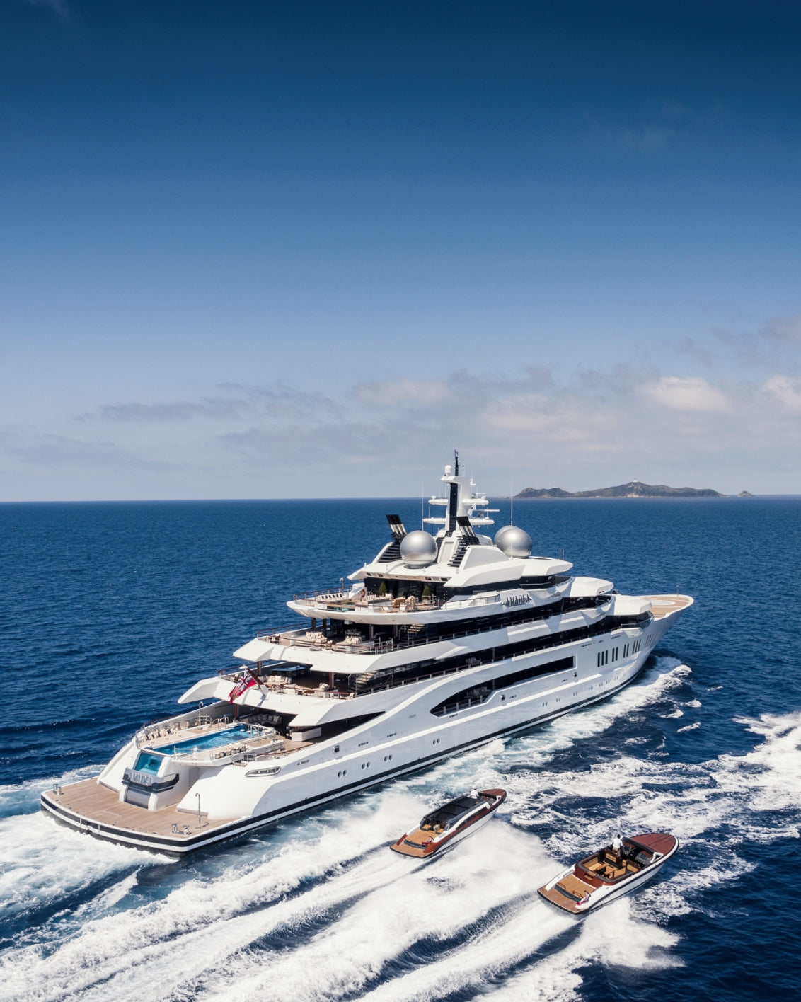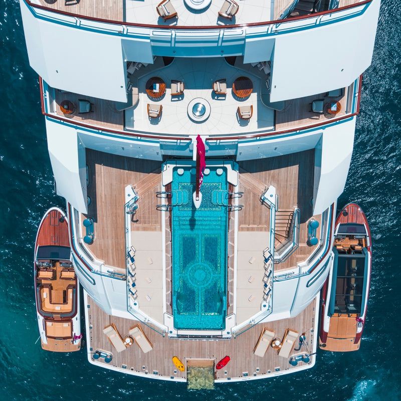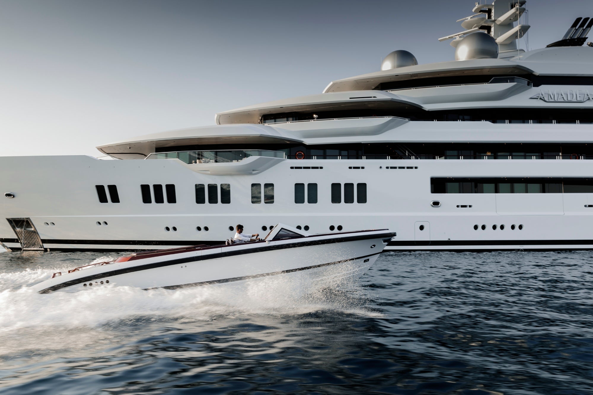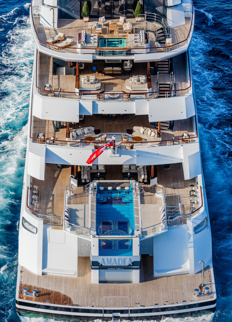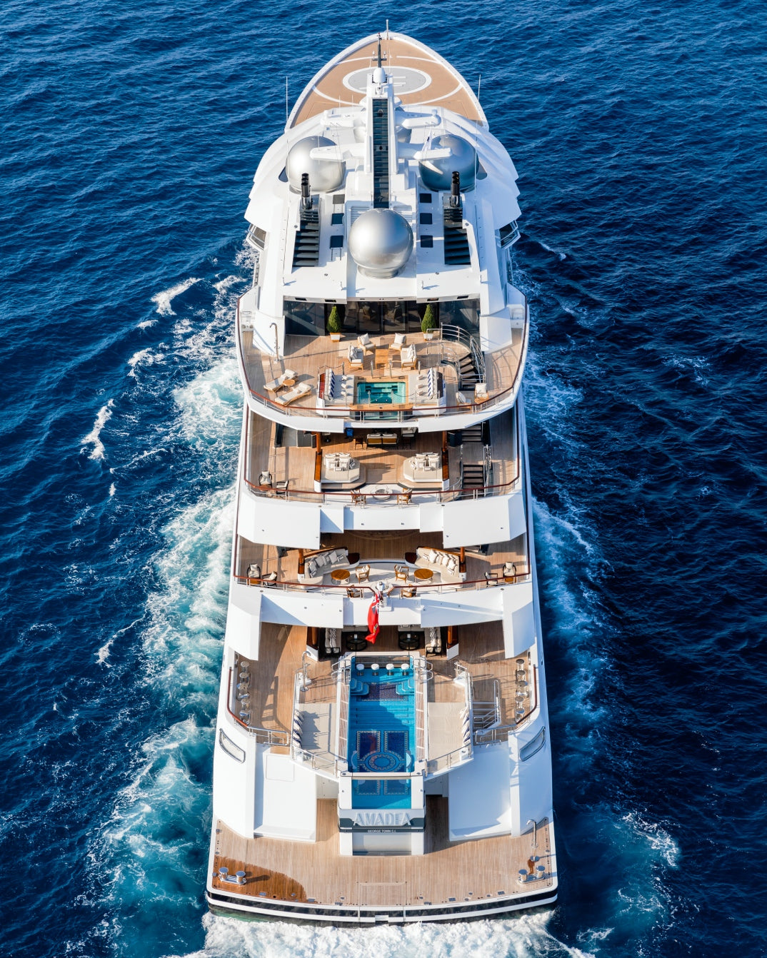 M/Y Amadea, a 106-meter masterpiece built by leading German shipyard Lurssen, features an elegant and powerful exterior balanced by a contemporary yet classic interior.