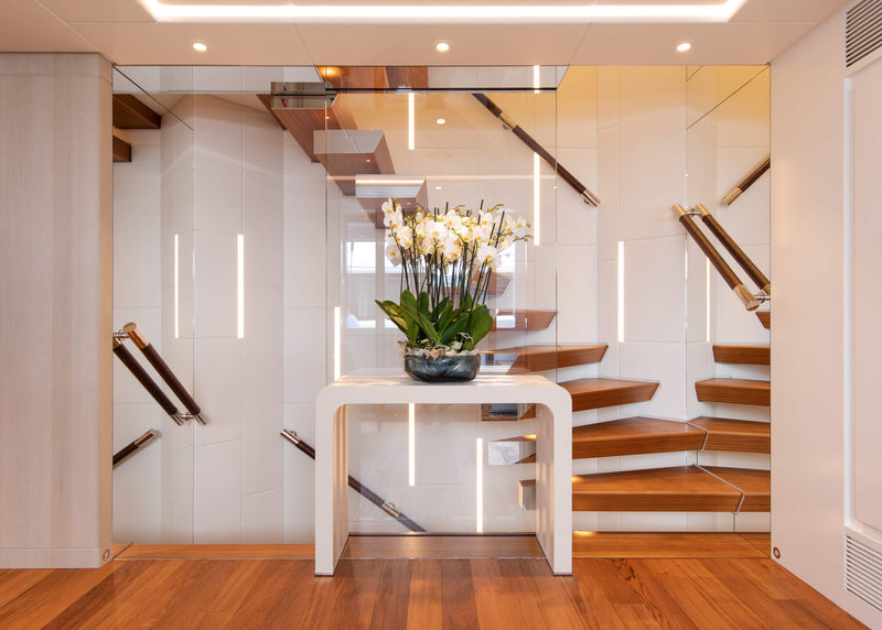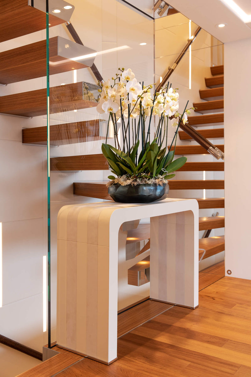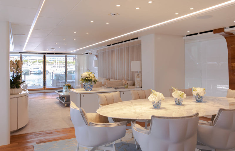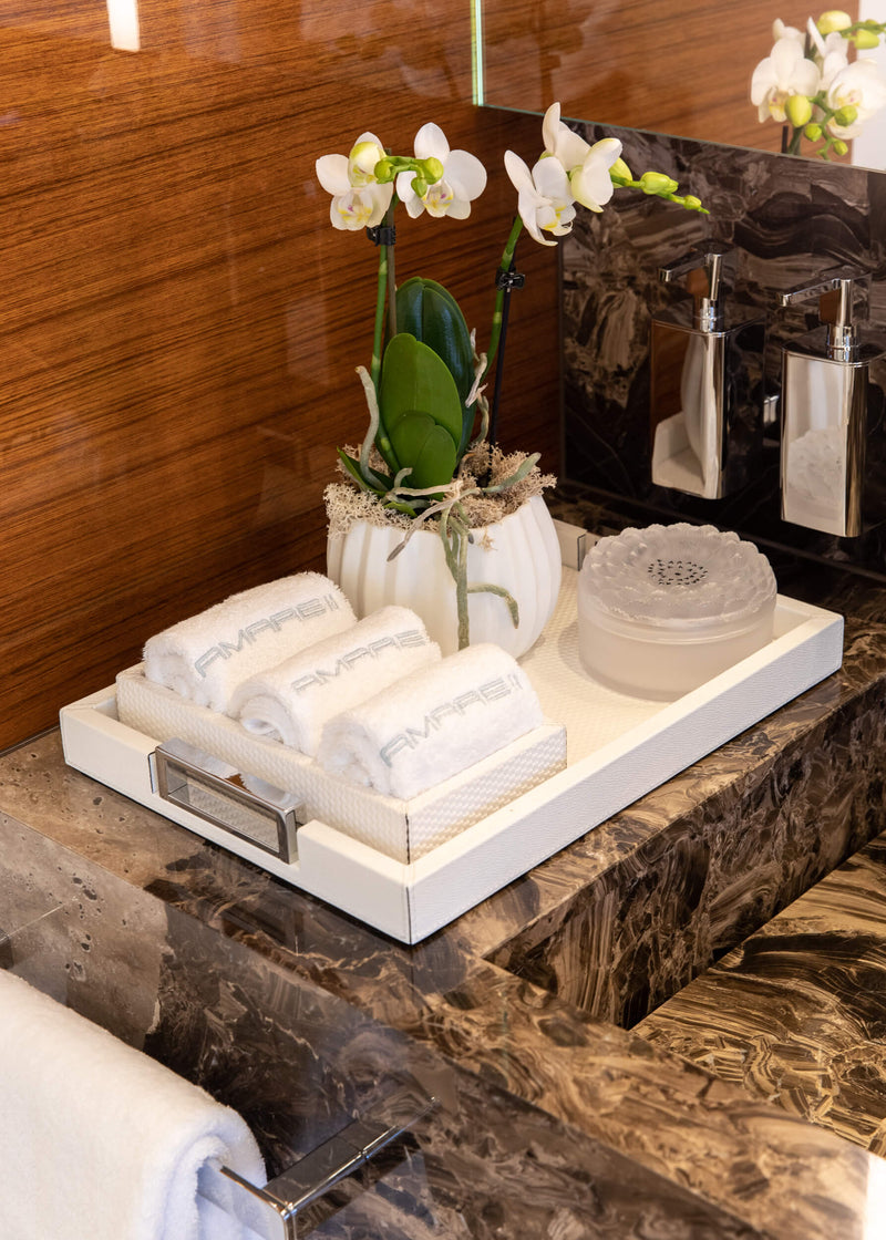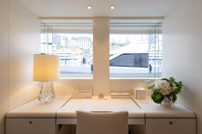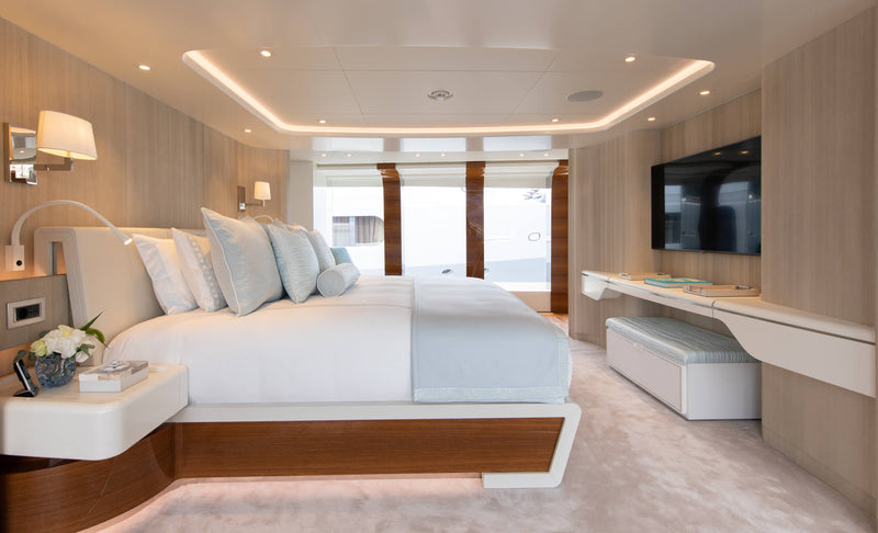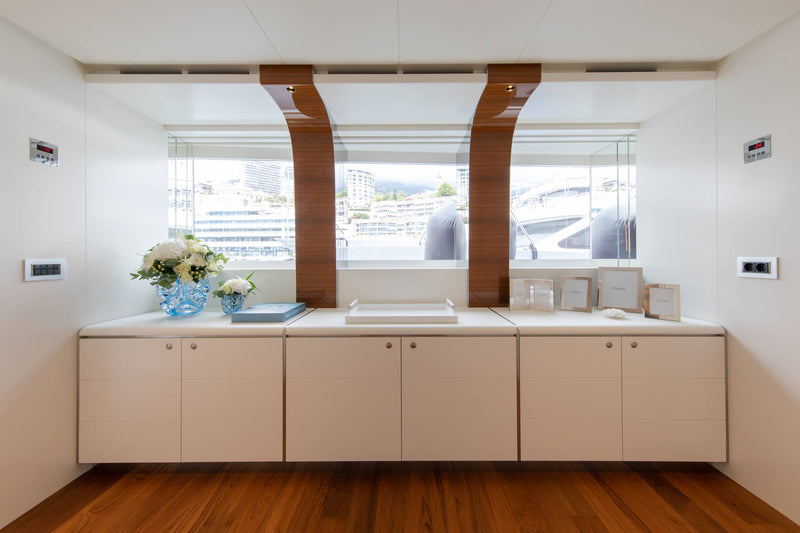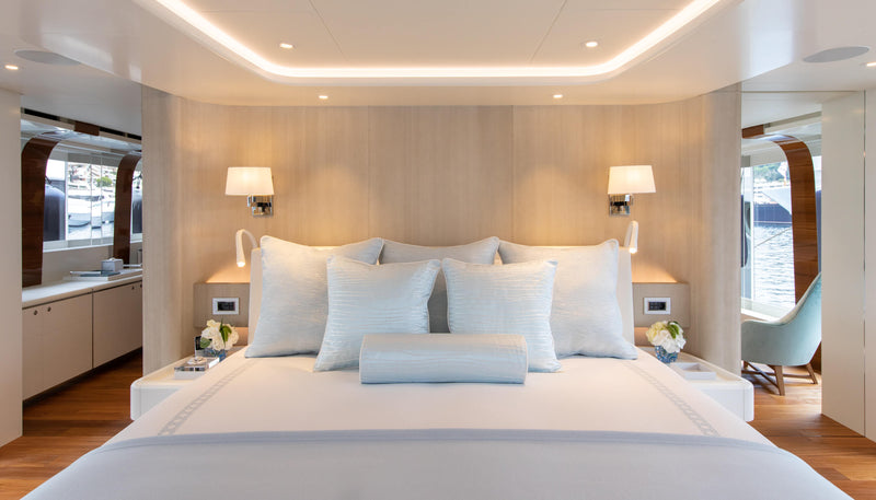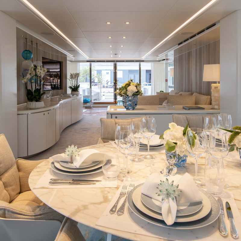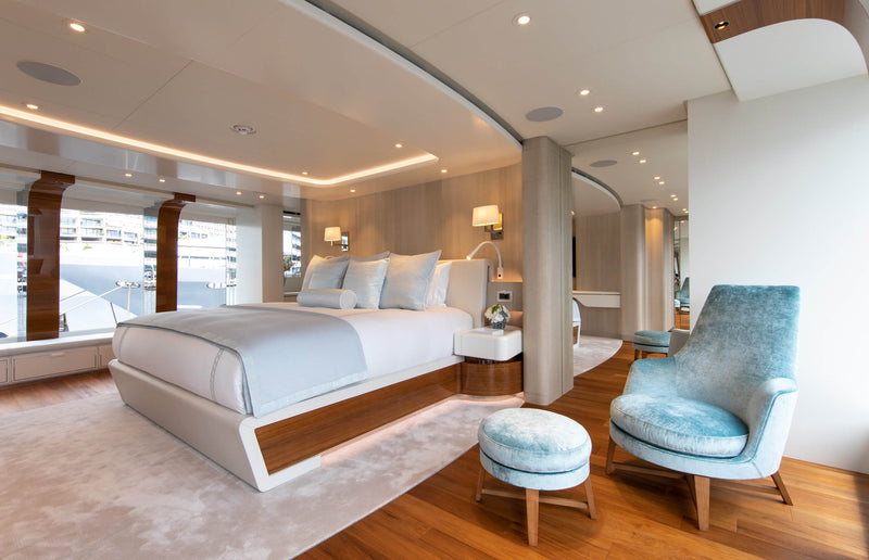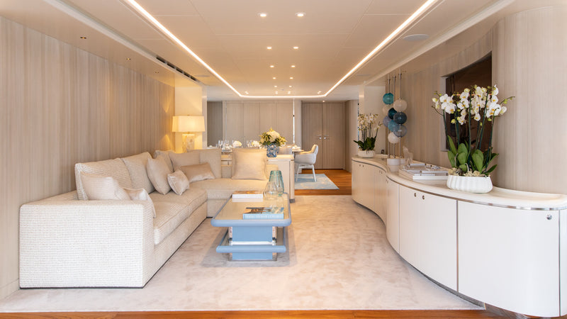 Step aboard the captivating Amare II, a 50-meter Heesen yacht we had the pleasure to decorate. Its sleek exterior, built by the leading Dutch shipyard, exudes beauty and refinement.