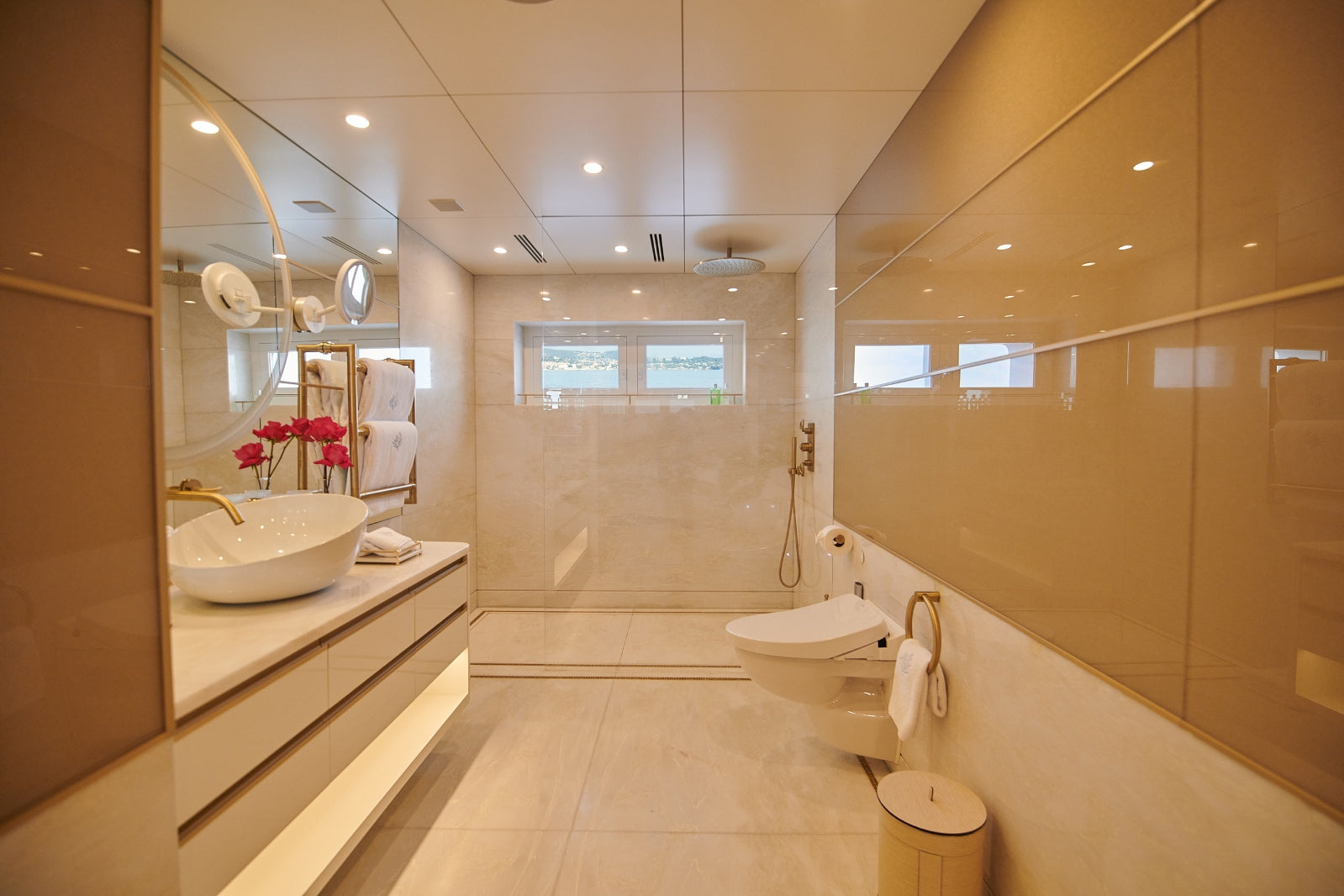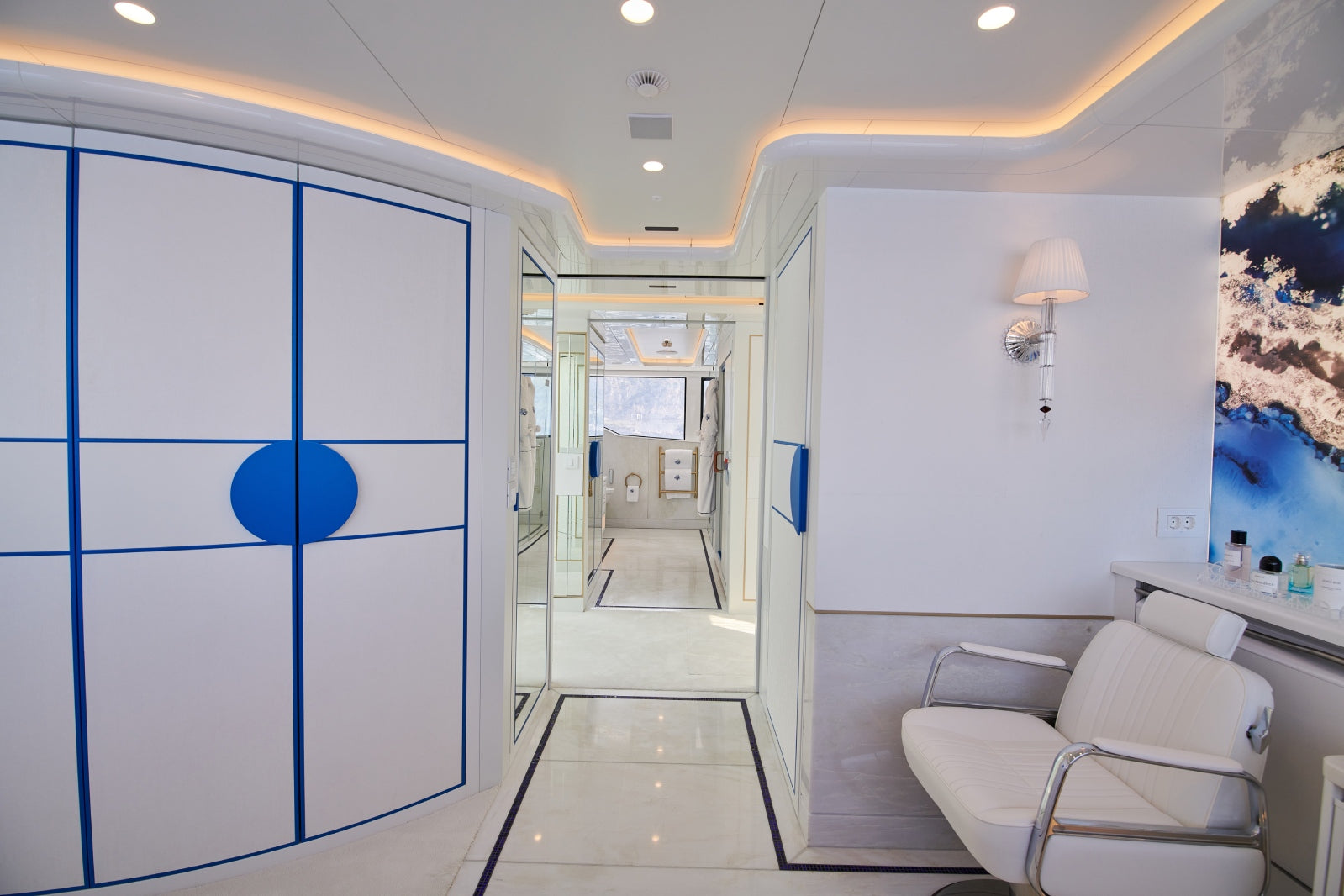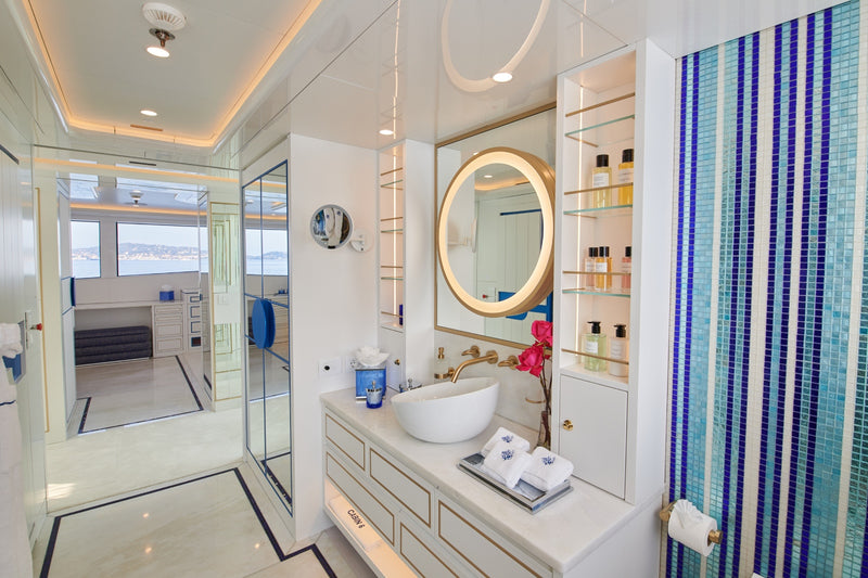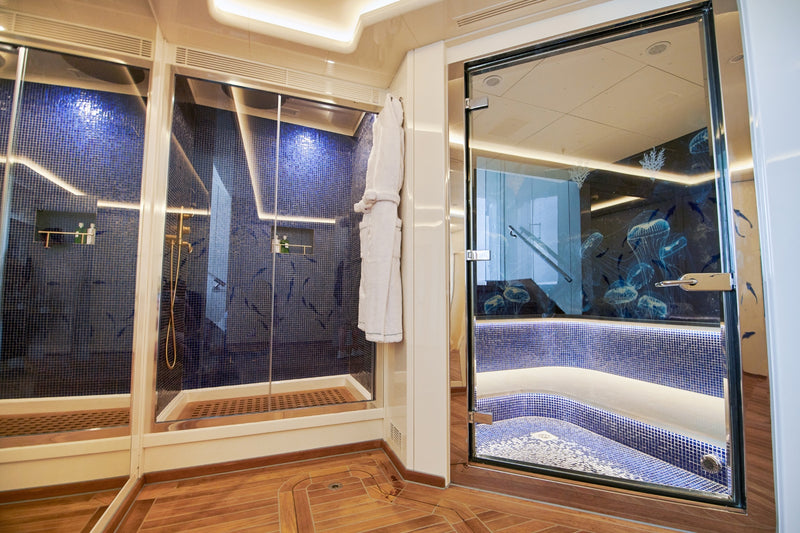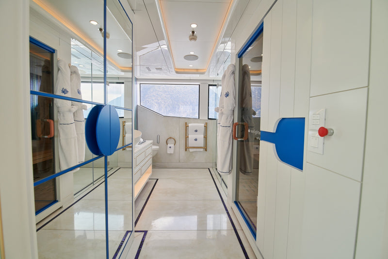 We made sure every detail was in harmony with the marine theme, right until the bathrooms, sauna and massage rooms.