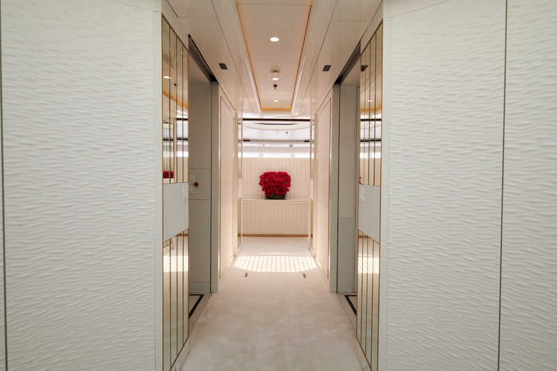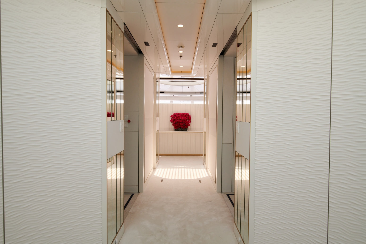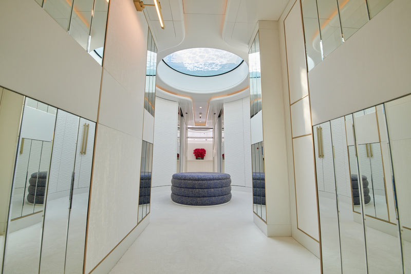 Embarking on the iconic Coral Ocean yacht, a 72-meter yacht from Lurssen, we adorned its interiors with sumptuous fabrics and materials, and custom made furniture in luxurious materials such shagreen, mother of pearl, silk or laser-cut leathers and suedes.