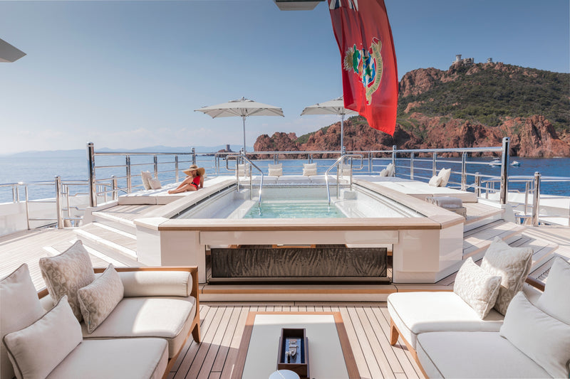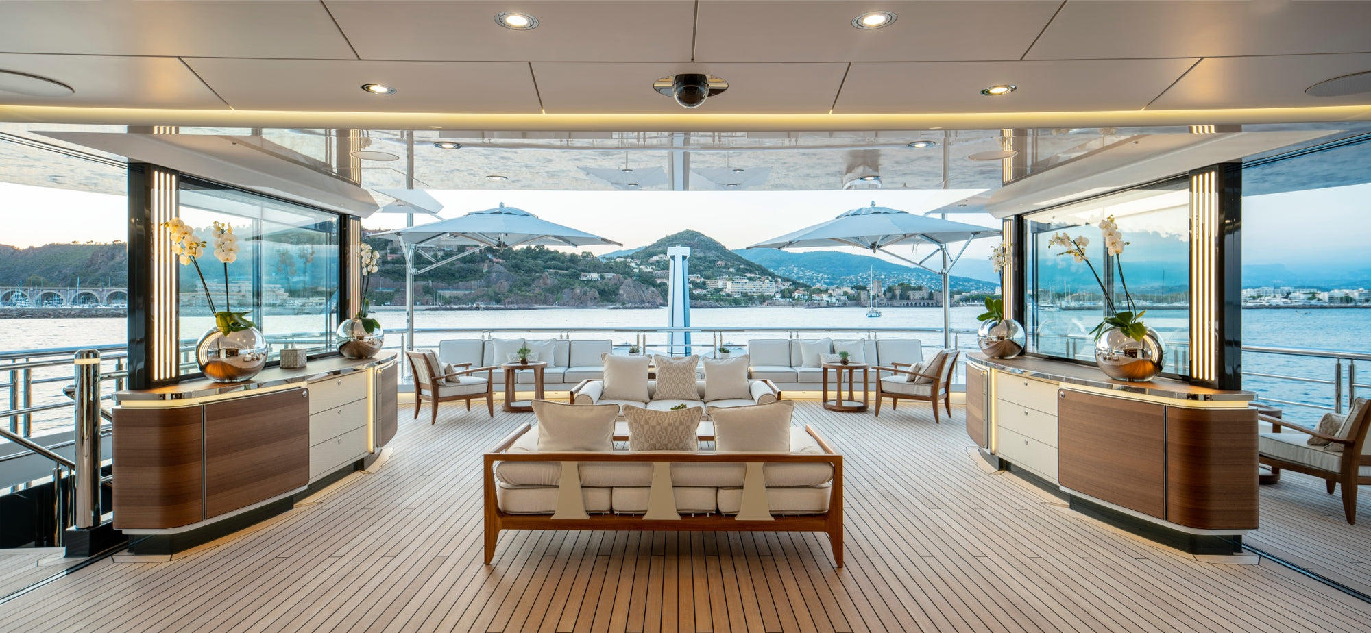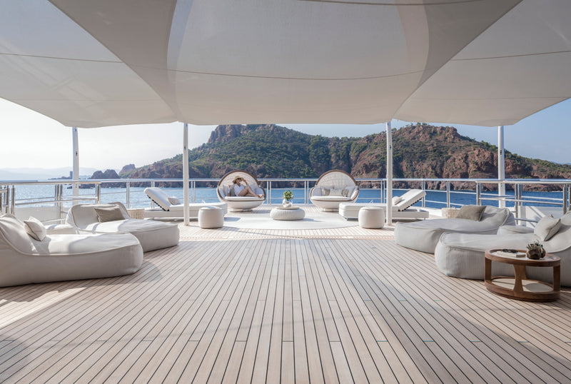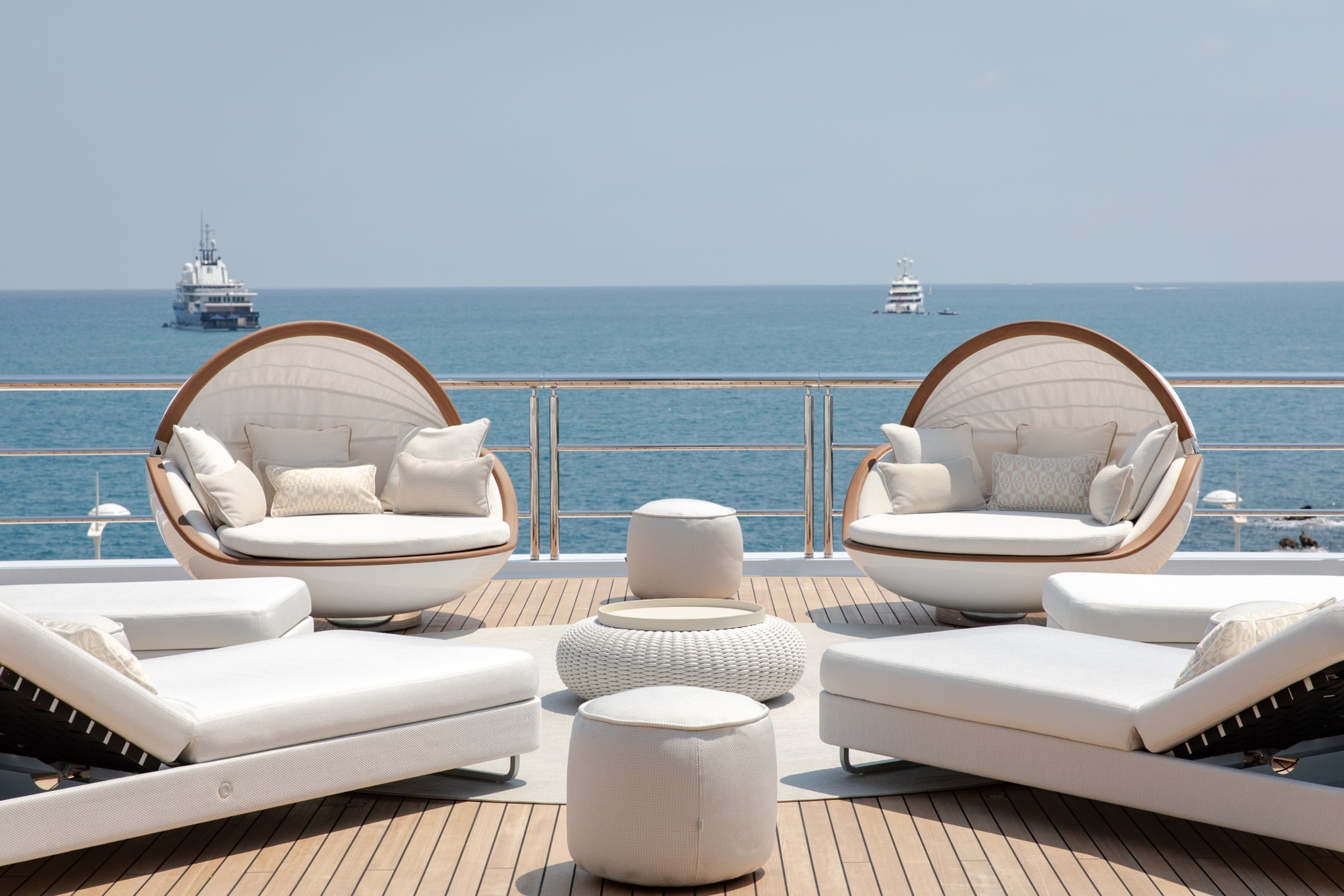 It was our immense pleasure to decorate the outdoor decks of 90 meter MY Dreamboat, an Oceanco masterpiece designed by Espen Oeino.