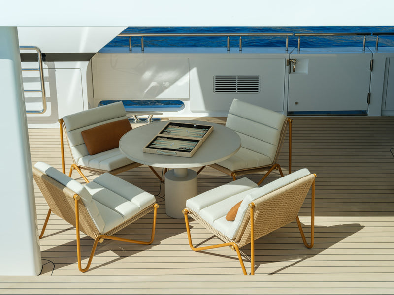 Step inside the 36m catamaran designed by espenoeino and discover how we brought her interiors to life. The baxtermadeinitaly indoor & outdoor furniture sets the tone for a relaxed yet elevated atmosphere. Our exclusive home linen collection with oliveri, perfectly paired with our signature fabric line with dedar in refined ice-cream tones, adds softness and character throughout the cabins. The finishing touch comes with giobagnara leather accessories, enhancing each space with timeless elegance. Every detail has been carefully curated to reflect a lifestyle of sophistication at sea.