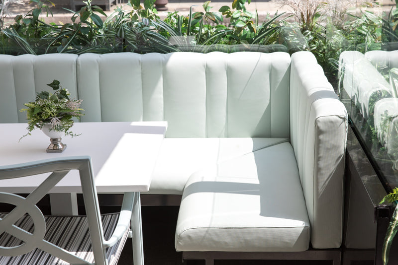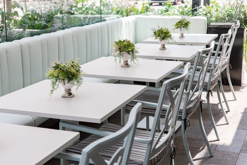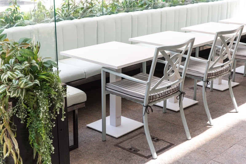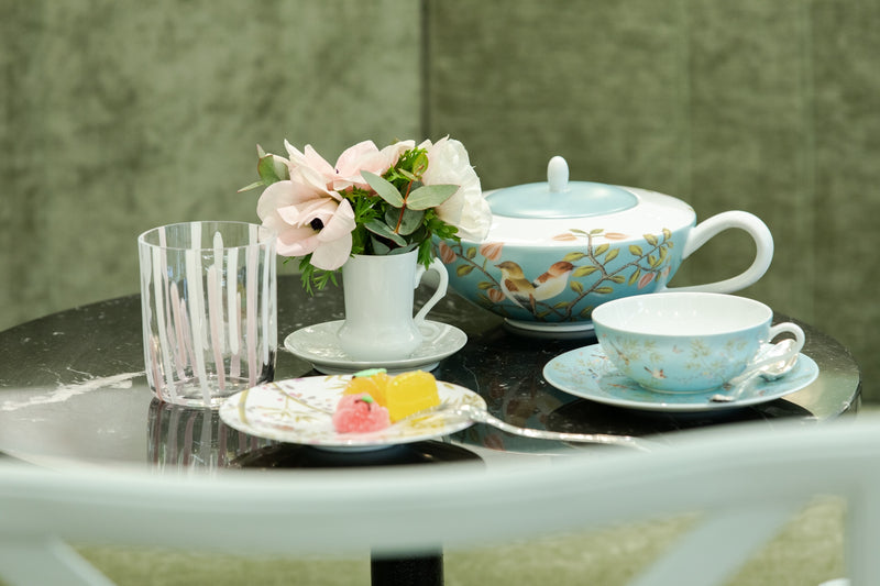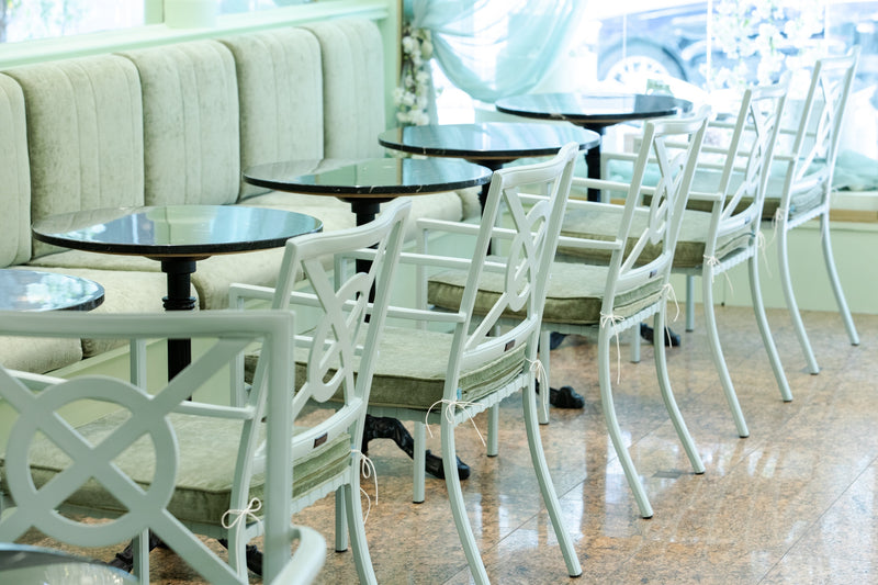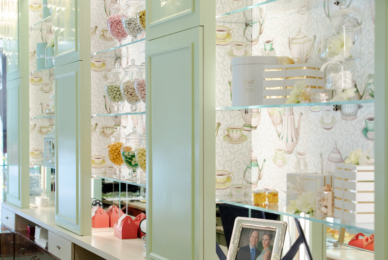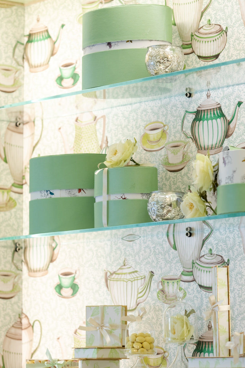 Enjoy some fresh pastries and beverages sitting in its new elegant atmosphere with custom made pistachio furniture, a light green seating area with soft Nobilis velvet and Manuel Canovas' wall fabric will make even the Mad Hatter envious!