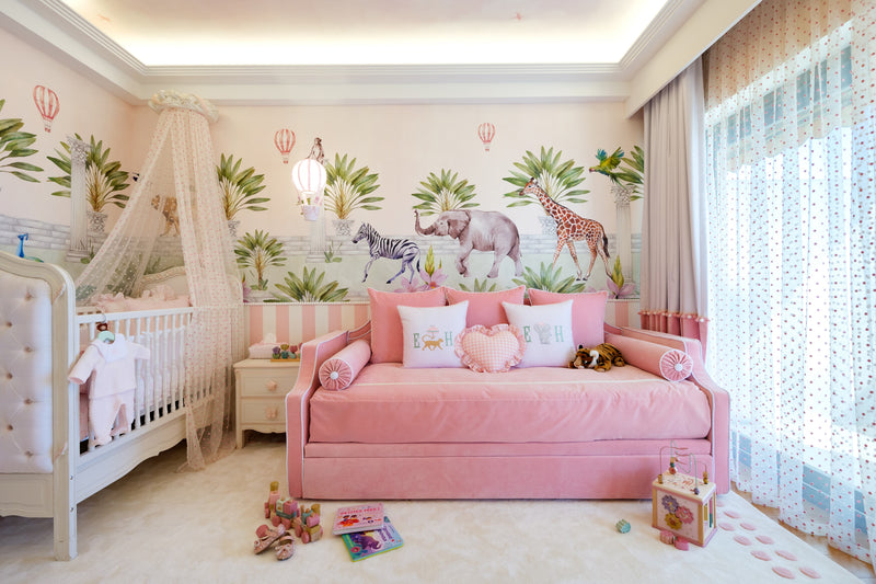 At Sabrina Monte-Carlo, we design nurseries that honor childhood with timeless elegance. In the Pink Animal Kingdom, imagination roams as freely as the gentle creatures gracing its walls.