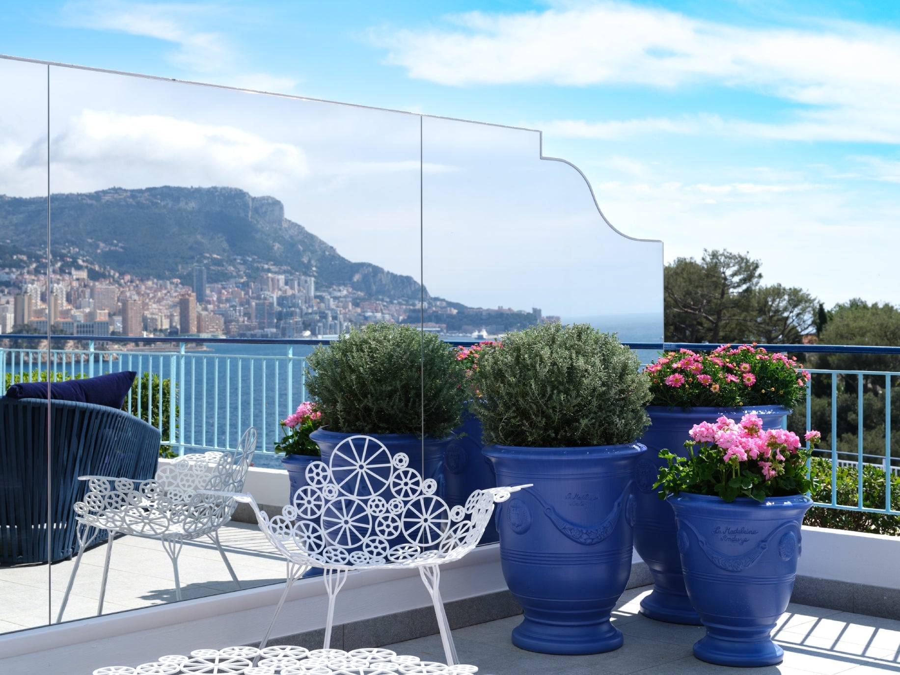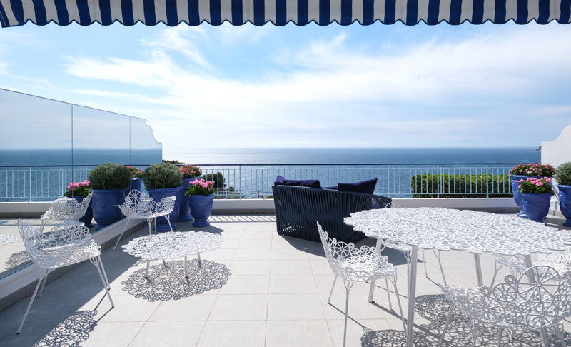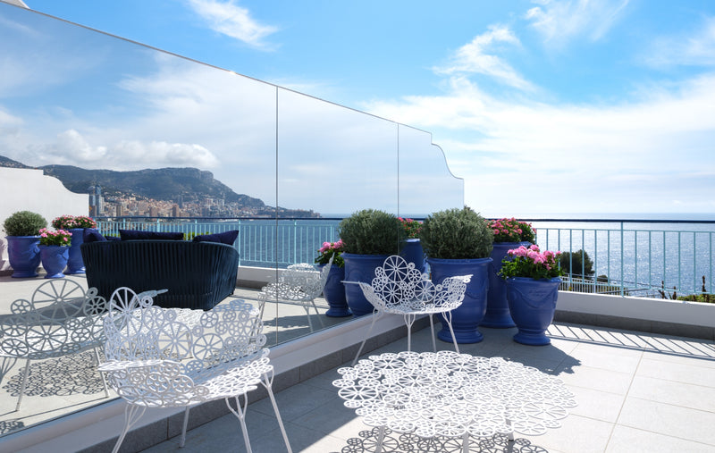 The pièce de résistance, however, is the immense balcony, outfitted with Paola Lenti, Campana Brothers furniture & ceramic glaze pots.